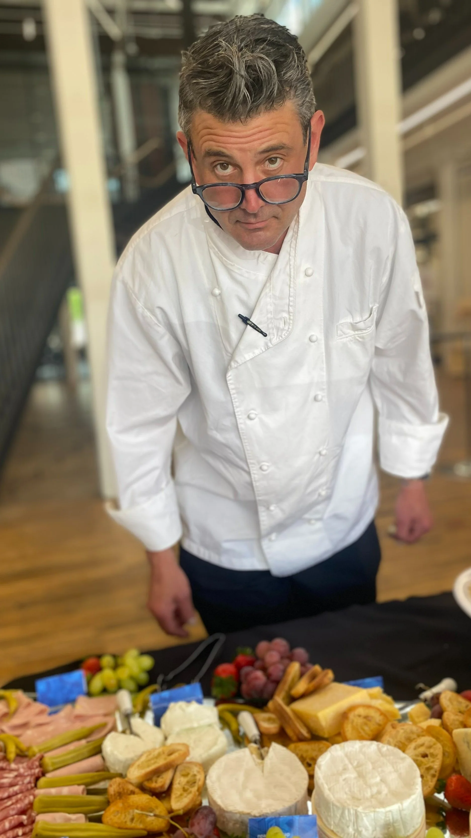 Chef Steve Atkins carefully prepares Composed Salad of Greens, KY Rose Cheese, Grilled Butternut Squash, Maple-Dijon Vinaigrette